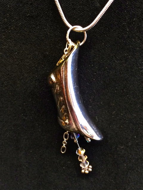 | ©2015 Barry Smith - Crystal, section of teapot handle plus careful cutting etc = pendant |