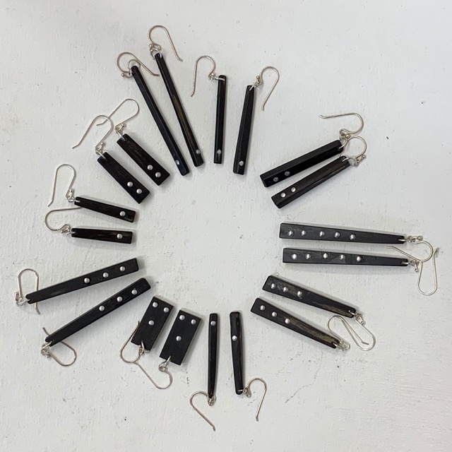 | ©2019 Barry Smith - Ten pair of buffalo black horn earrings with solid silver earwires |